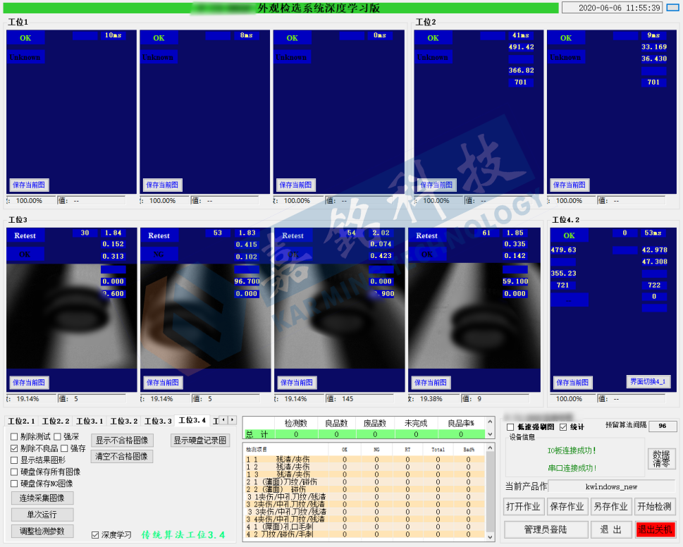 目前汽車發(fā)動(dòng)機(jī)裝配車間的物料配送是依靠人工來準(zhǔn)備的,沒有防錯(cuò)漏以及追溯功能,存在質(zhì)量風(fēng)險(xiǎn),并且無法找出核心問題進(jìn)行改善和糾正。因此,想要降低品質(zhì)風(fēng)險(xiǎn)提高效率,物流科的生產(chǎn)線升級改造成為首要解決的問題點(diǎn)。嘉銘科技根據(jù)發(fā)動(dòng)機(jī)物流科物料配送的要求,針對性的研發(fā)出汽車零部件物料配送防錯(cuò)漏視覺檢測工作站,利用AI深度學(xué)習(xí)軟件配合視覺系統(tǒng)實(shí)現(xiàn)零部件分配的防錯(cuò)檢測功能,從源頭上降低物料錯(cuò)配漏配的質(zhì)量風(fēng)險(xiǎn)。汽車零部件物料配送防錯(cuò)漏視覺檢測工作站特點(diǎn):1、系統(tǒng)采用多臺(tái)1200w像素的工業(yè)相機(jī)進(jìn)行實(shí)時(shí)的圖像采集,配合使用機(jī)器視覺專用大范圍LED光源,實(shí)時(shí)獲取物料托盤上的清晰圖像;2、采用AI深度學(xué)習(xí)軟件實(shí)時(shí)對數(shù)字圖像處理、分析和識(shí)別,能根據(jù)預(yù)設(shè)的程序發(fā)現(xiàn)缺失物料進(jìn)行實(shí)時(shí)報(bào)警,輸出有關(guān)報(bào)警信號;3、采用Windows操作系統(tǒng),能夠生成有關(guān)數(shù)據(jù)和Excel報(bào)表(物料托盤每個(gè)型號分配的物料數(shù)量、生產(chǎn)良率、不良項(xiàng)目統(tǒng)計(jì))。既能有效把控生產(chǎn)質(zhì)量,又能快速溯源質(zhì)檢記錄。4、該系統(tǒng)支持多個(gè)機(jī)型的品種快速切換,并且可以與生產(chǎn)管理系統(tǒng)聯(lián)網(wǎng),數(shù)據(jù)共享,實(shí)現(xiàn)從生產(chǎn)源頭上把控生產(chǎn)質(zhì)量。嘉銘科技研發(fā)出汽車零部件物料配送防錯(cuò)漏視覺檢測工作站,通過AI深度學(xué)習(xí)系統(tǒng)和機(jī)器視覺系統(tǒng),最大限度地從源頭上把控了零部件的分配狀態(tài),避免零部件在輸送到產(chǎn)線時(shí)出現(xiàn)錯(cuò)配、漏配、少配等品質(zhì)異常的問題,進(jìn)一步提升生產(chǎn)的效率。該系統(tǒng)還可應(yīng)用于3C半導(dǎo)體行業(yè)、汽車行業(yè)、家電行業(yè)。